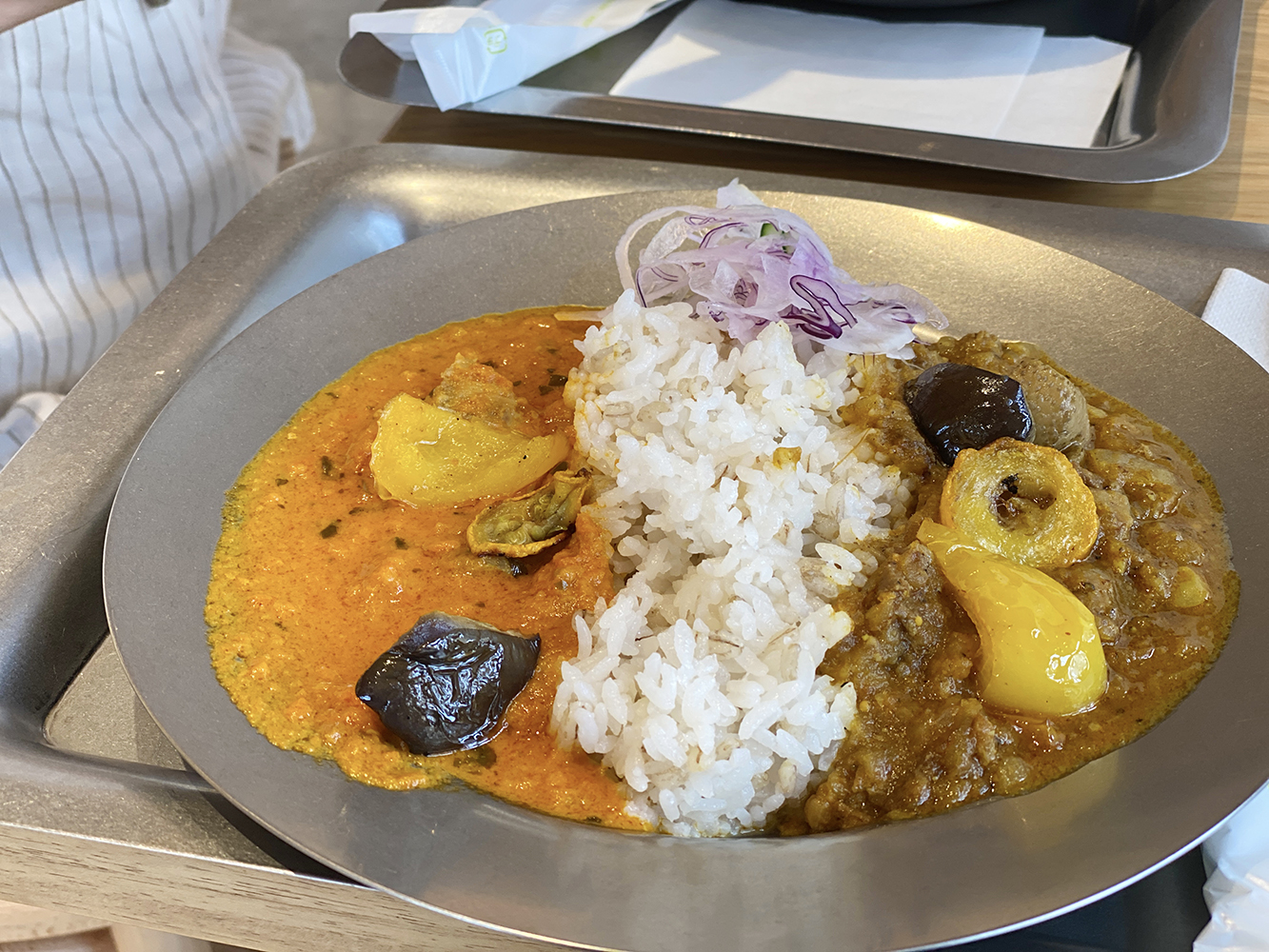 私たちは2種カレー盛りのランチをいただいた。