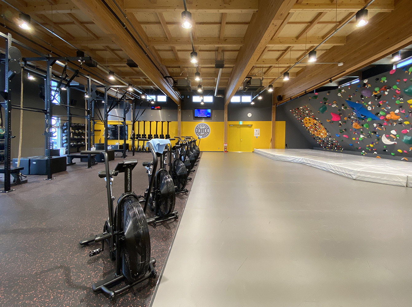 ・スポーツジムでは、クロスフィットとボルダリングを楽しめる。