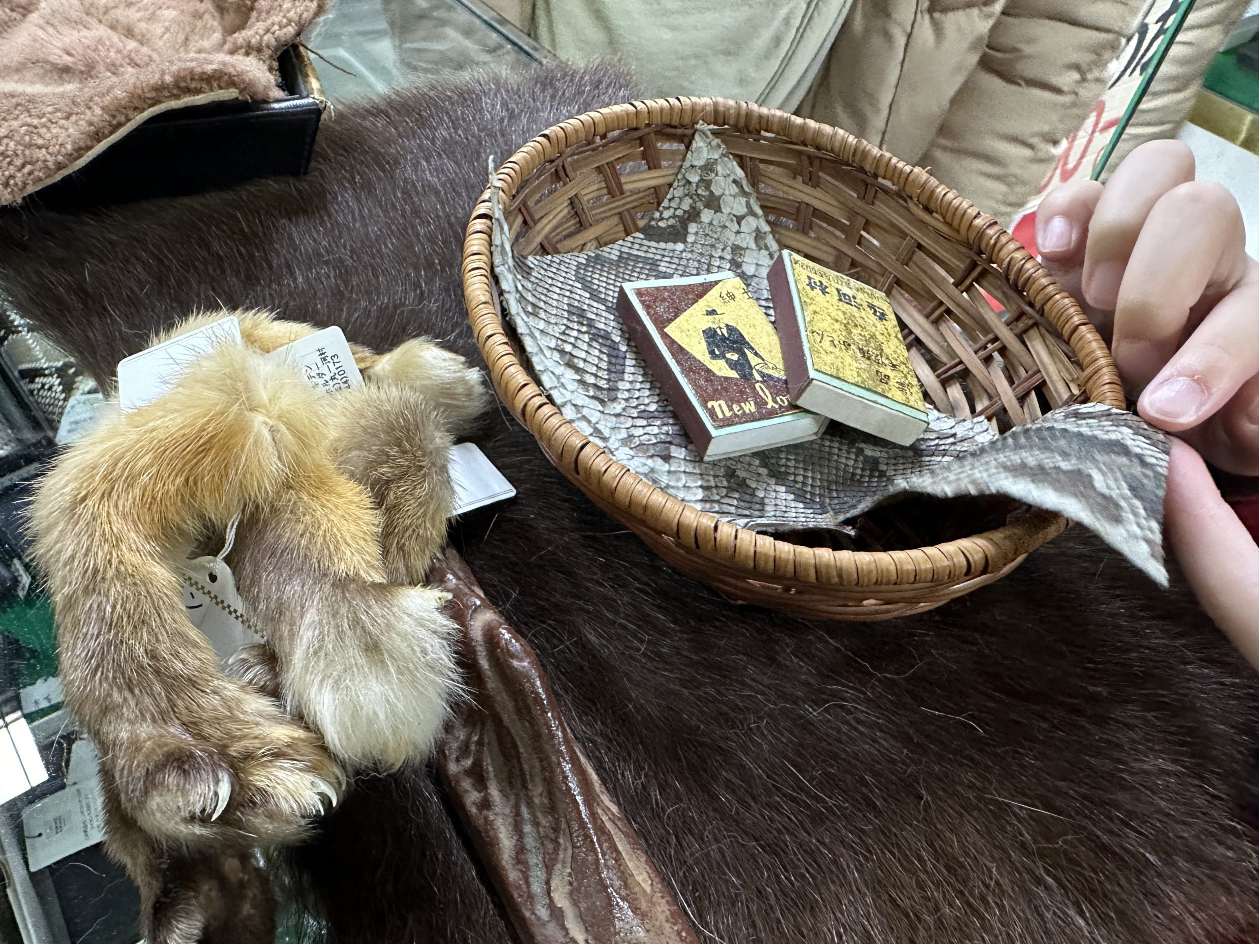 左手にある毛皮は、キーホルダー型のモノで『テン』だったかな。
