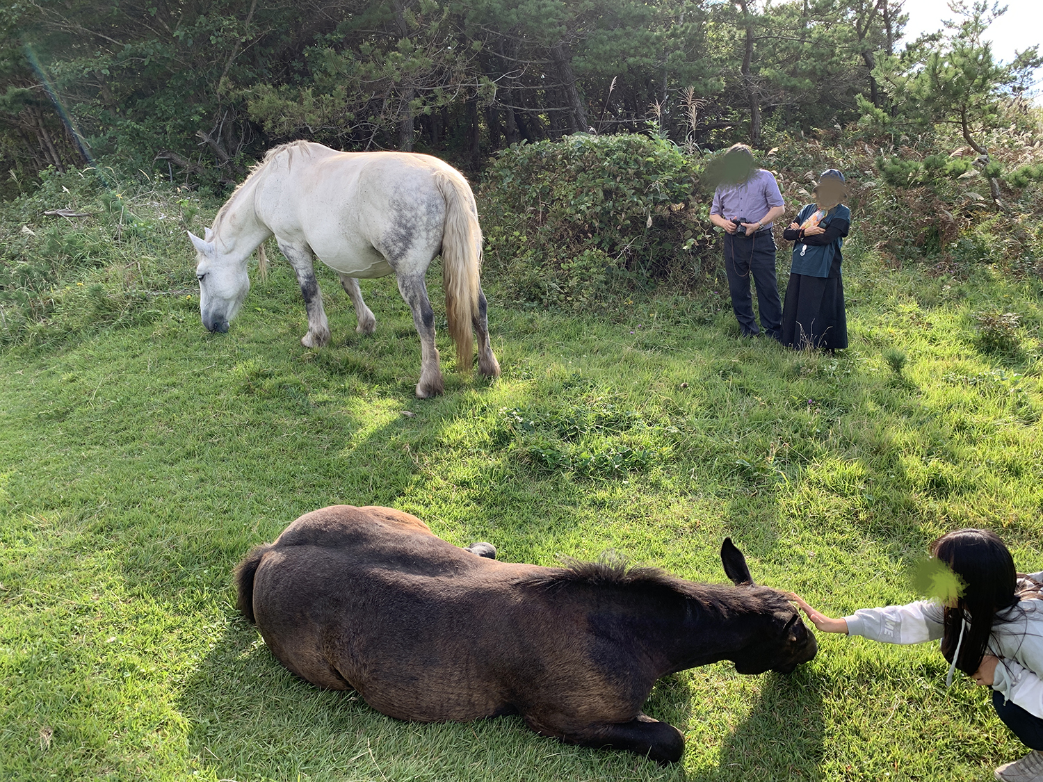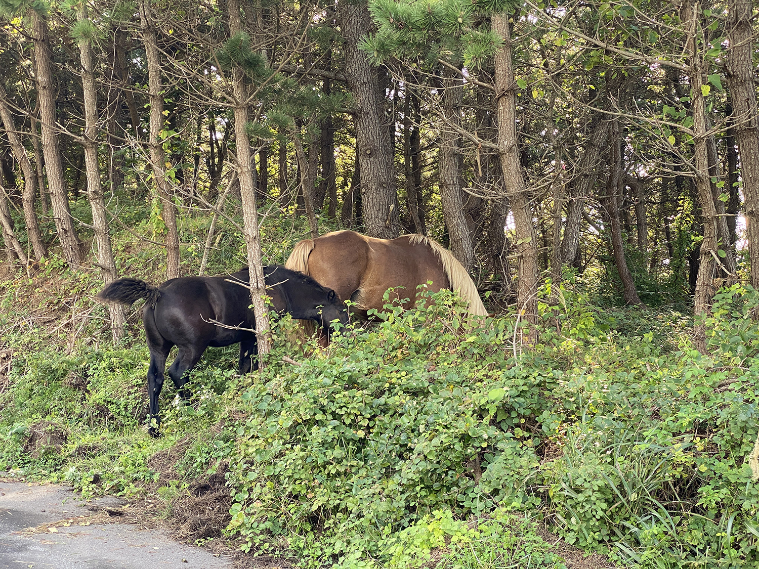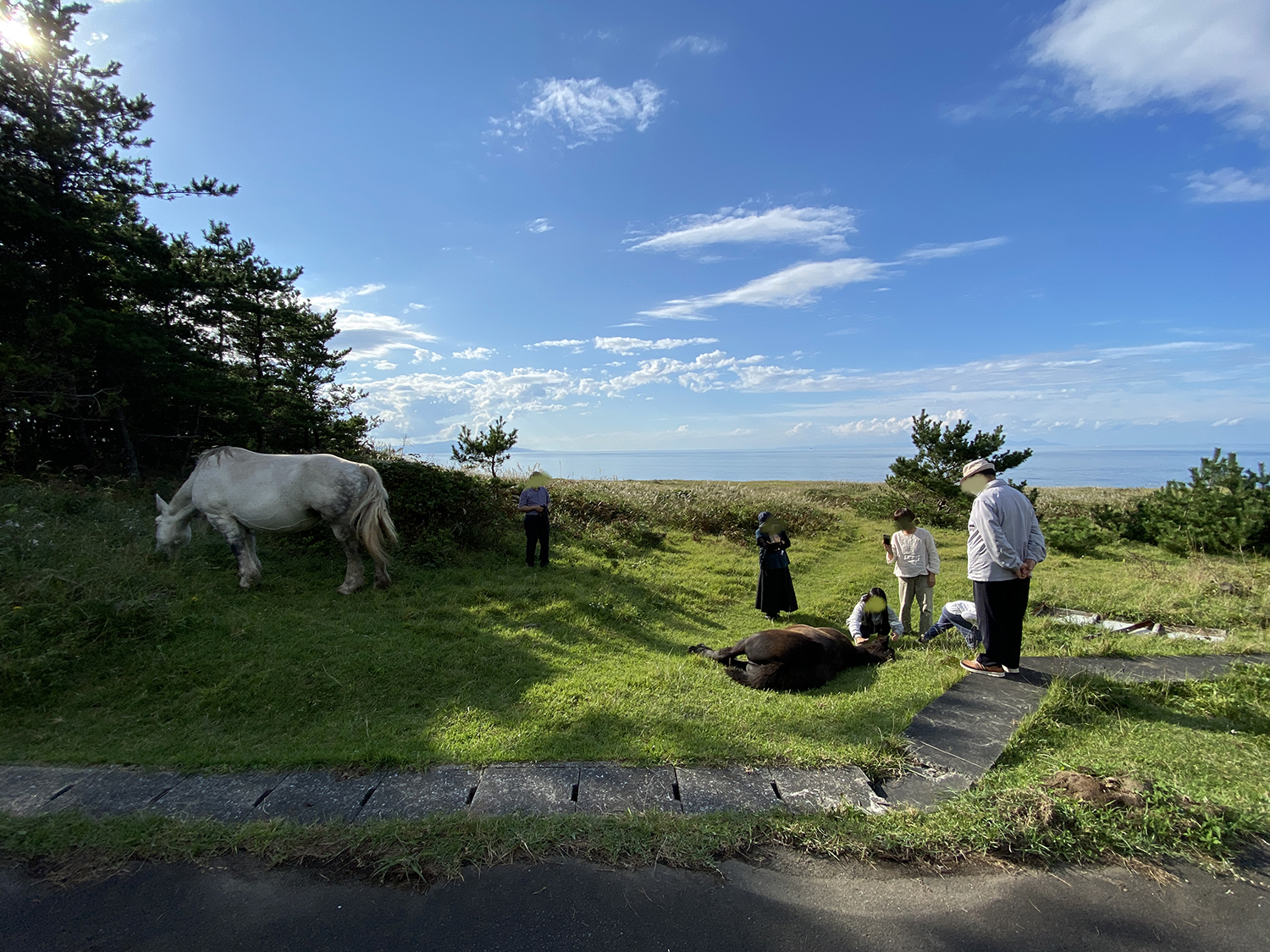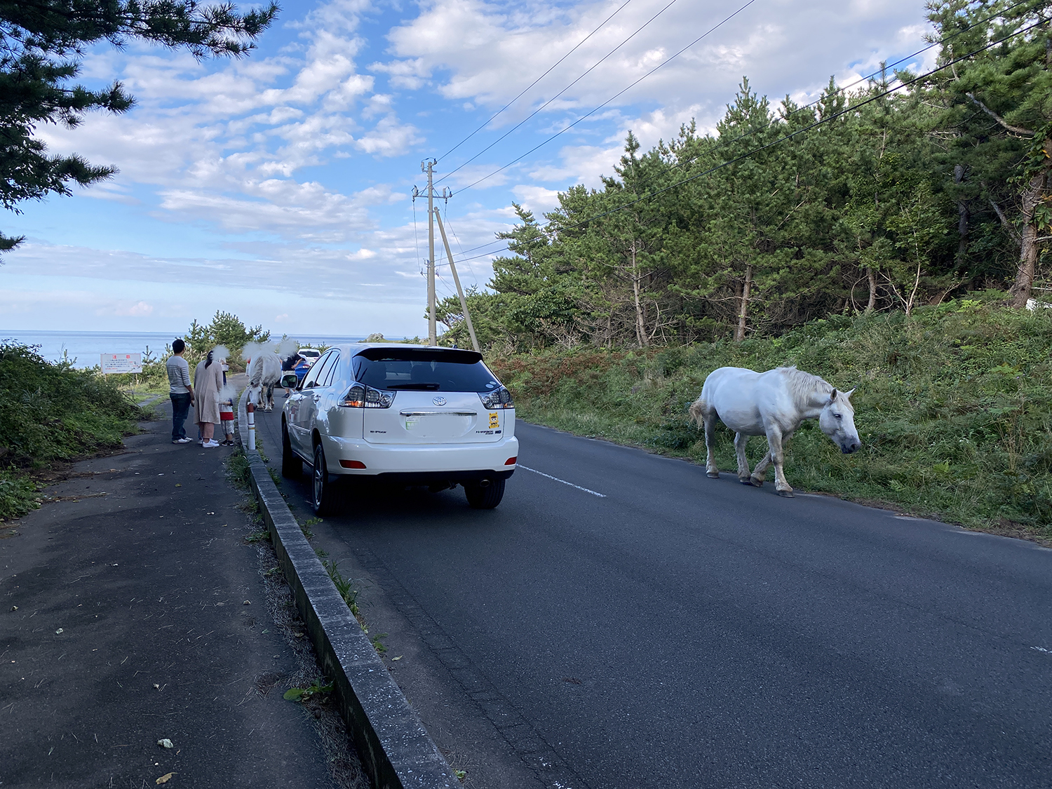 この後、軽トラに乗った地元の方に「馬に触ると危ないよ」と注意されました。