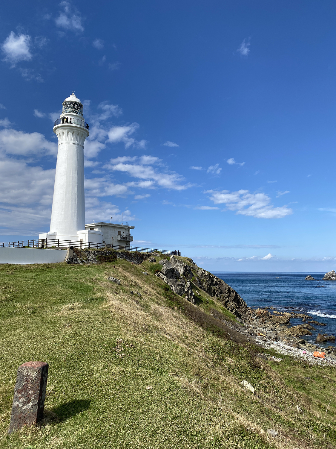 ここには、白い灯台と、放牧されて自由気ままに歩く寒立馬(kandachime)を見ることができます。