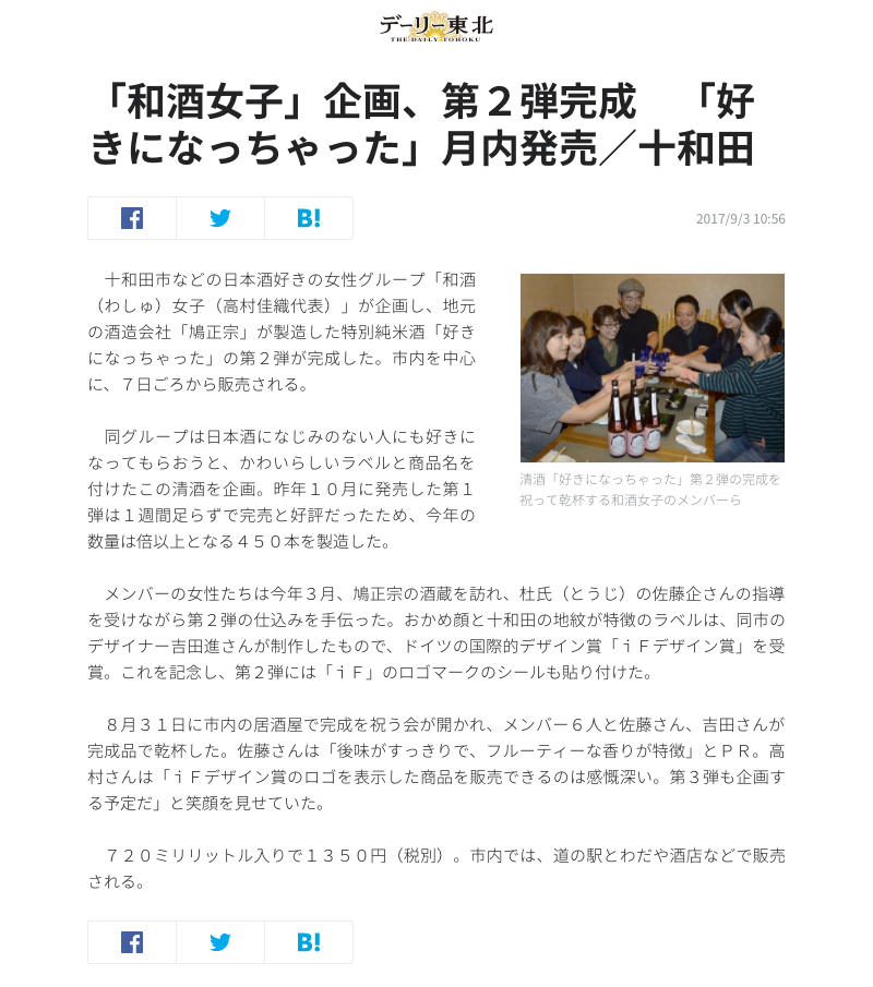 info 〈デーリー東北〉2017/9/3掲載_「好きになっちゃった」 jitozu_zu 2017年9月12日 / 2023年10月9日 デーリー東北に載りました。笑|「和酒女子」企画、第2弾完成 「好きになっちゃった」月内発売/十和田 https://t.co/iSbX6ntZH4 — 字と図_よしだすすむ (@suuyoshida) 2017年9月11日 《関連する記事》美容文芸誌「髪とアタシ」リニューアルロゴデザイン左手の位置が見事に消耗する #キーボード カバー 。#交換 #⌘s ⌘a #⌘w #option #keyboardやっと『グラフィックデザイナーの一年展×2』2022を開催そして、念願の1位を獲得しました@青森県立美術館[経験者が語る]人生でいちばんお金のかかる、必要のなかった『家・結婚式・起業』について[ペットを守る方法]猫にAirTagを半年運用して見えてきた事、今後改善して欲しい事【マイブーム】今さらなのですが細野晴臣さんに夢中まだまだ火器投入 #吹雪吹雪 #氷の世界 #十和田 #ストーブ #雪の日の仕事は捗る十和田の移住ポータルサイト『日々コレ』に載せていただきました!庭の竹から #七夕 用の笹を拝借【NHKのFMラジオ】ピーターバラカンさんの『ウィークエンドサンシャイン』でも流れた〈大友良英さん推薦〉浜田真理子さんが歌う『しゃれこうべと大砲』十和田市現代美術館に来たならば、ついで(一緒)に行くと面白い場所[周辺観光スポット]リスト一覧十和田の和菓子屋のシュークリーム『御菓子司 しぶたみ』