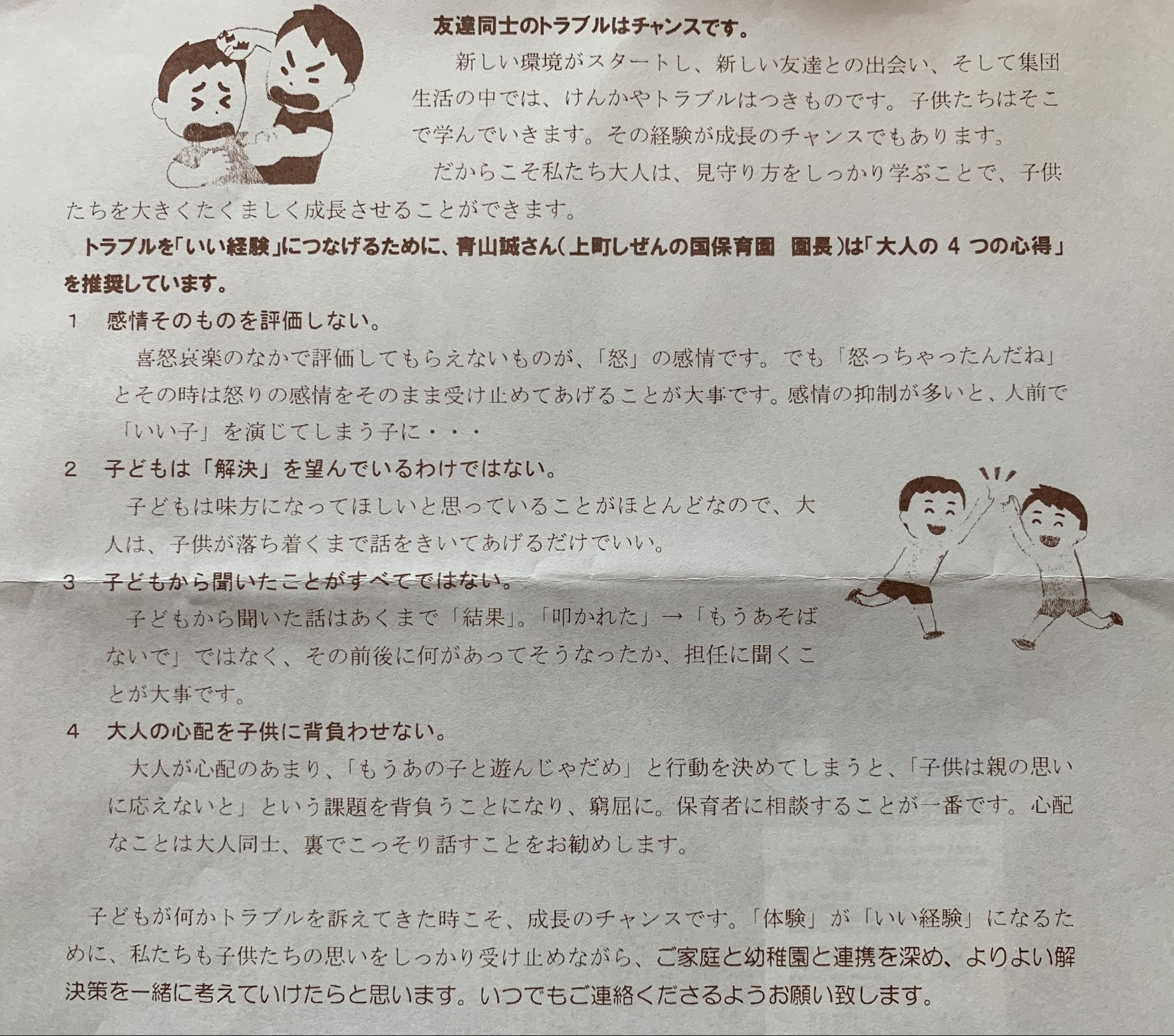 そして、園長のお便りでの伝え方も素晴らしいですね。