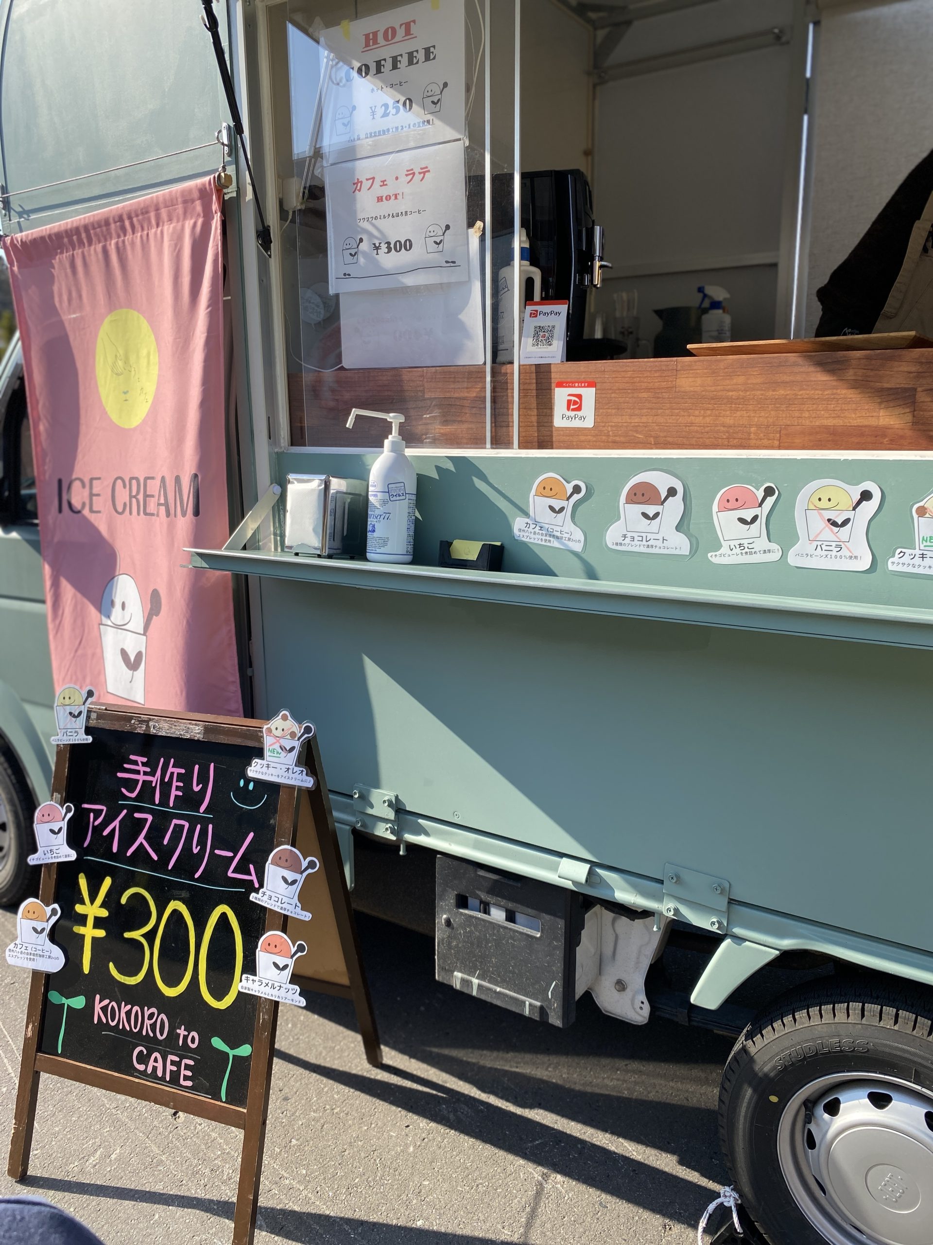 お店の駐車場には、たくさんの『キッチンカー』が並んでいて、活気があるな〜と感じました。ちょっと珍しいこだわりの商品を提供されていたので、買い食いが楽しくなります。