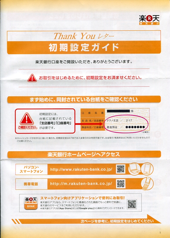 同封されている“Thank Youレター”初期設定ガイドを見ましょう。