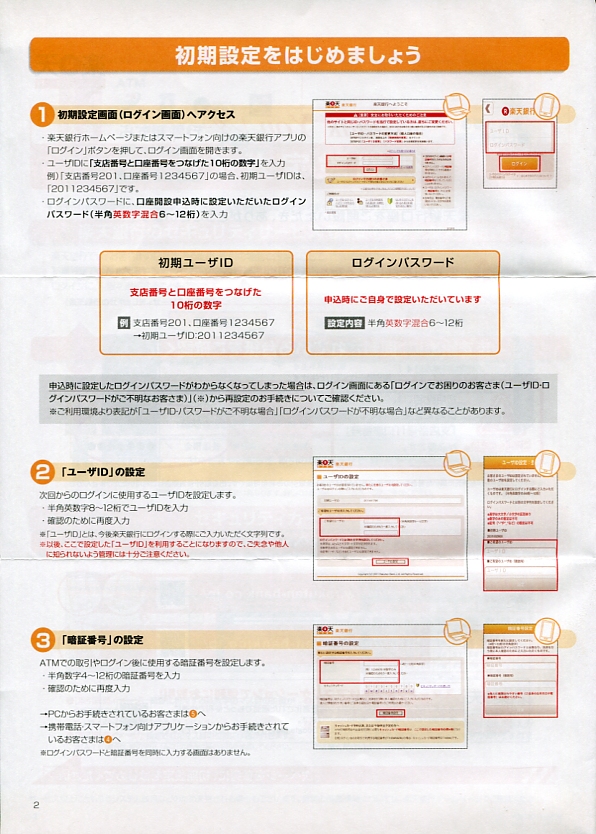 初期ユーザIDは、支店番号と口座番号をつなげた10桁の数字