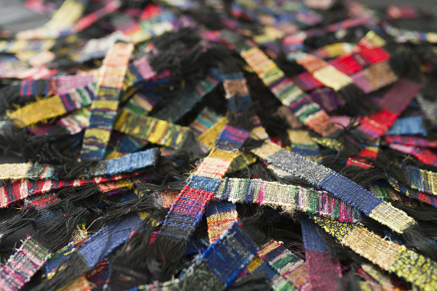 華頂の華を、裂織で表現しました。 一本ずつ手織りで、このキチガイじみたオーダーを快諾してくれた作家の野崎弘子さんの技術とセンスに脱帽。