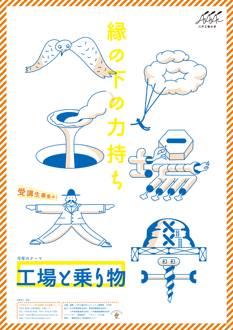 diary 展開するとこんな感じ #八戸工場大学 #ポスター #八戸 #受講生募集中 #アートプロジェクト #大学ではないですよ #jitozu jitozu_zu 2016年7月28日 / 2020年6月4日 client: 八戸市庁 design: 字と図 illustration: よしだすすむ(字と図) 展開するとこんな感じ #八戸工場大学 #ポスター #八戸 #受講生募集中 #アートプロジェクト #大学ではないですよ #jitozu(from Instagram 《関連する記事》特別純米酒【さくらやぶさめ】十和田桜流鏑馬仕込み〈パッケージデザイン〉青森グラフィックデザイナーの一年展2025でグランプリを受賞|字と図建築家WAAのオフィスと併設されたギャラリーのロゴマークと看板いよいよ冬がやってきてな。って寒さの青森県十和田市(写真は昨年の雪だるま/おじじ作) #雪だるま #snowman今回のメトロミニッツは日本酒特集!オススメですよ偶然のアートなのか、絶妙のバランスがカッコいい女たちの芸術『The Quilts of Gee’s Bend』(ギーズベンドのキルト)Eテレのガールズクラフト観て娘が制作! 綿あめペンシル。かわいい✨[リアルSNSのすすめ]社会人たるものマナーとしてプライベート名刺をつくろう!突発性発疹(1歳8ヶ月男児の場合)続いて、サブグラフィックエレメント『工』 #八戸工場大学 #サブグラフィックエレメント #煙突 #水蒸気 #八戸 #jitozu十和田奥入瀬芸術祭へ〜その2サイトマップ