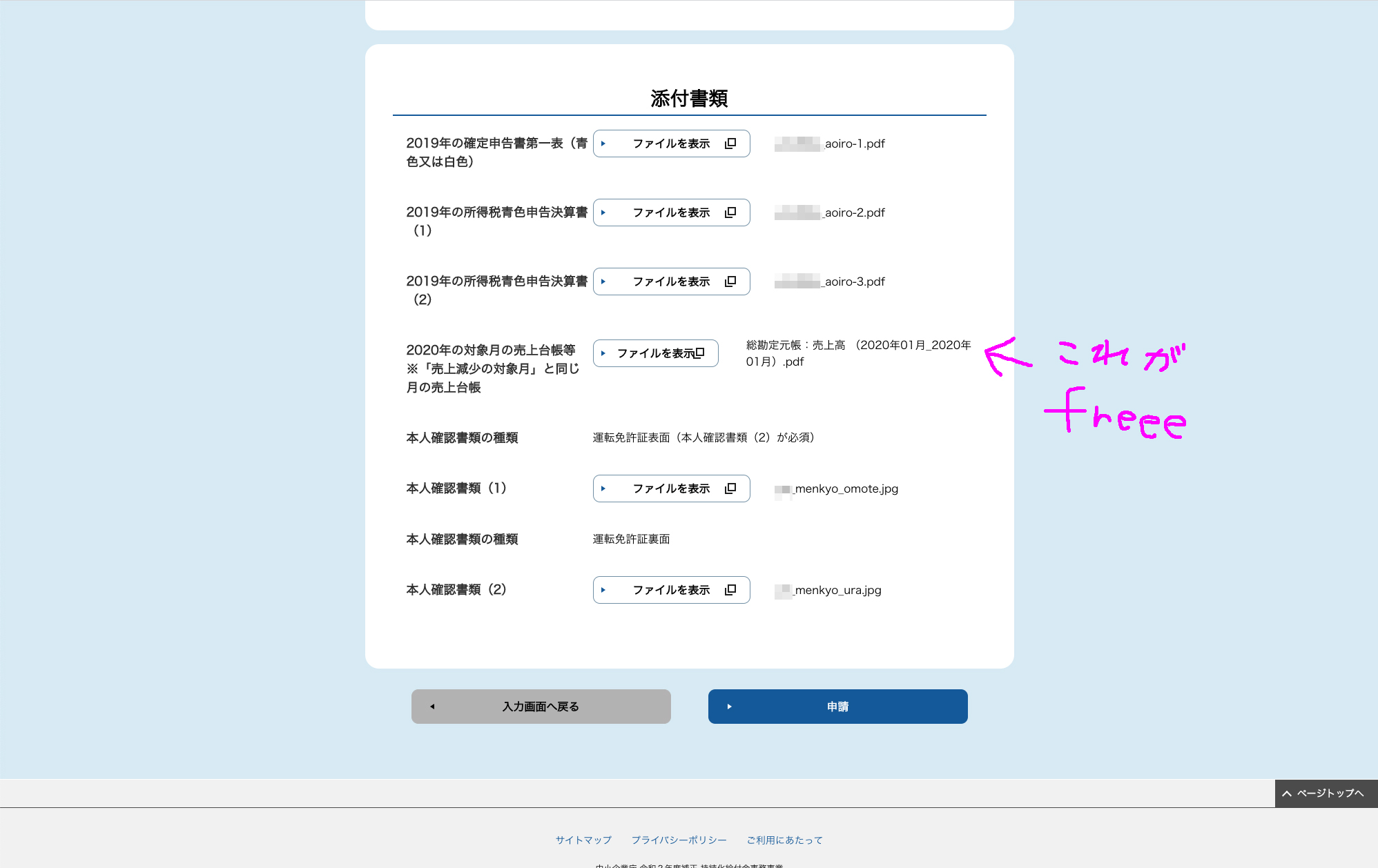 あとで『申請する』際に、アップロードする時に、書類ファイルがたくさんになるので、ファイル名に