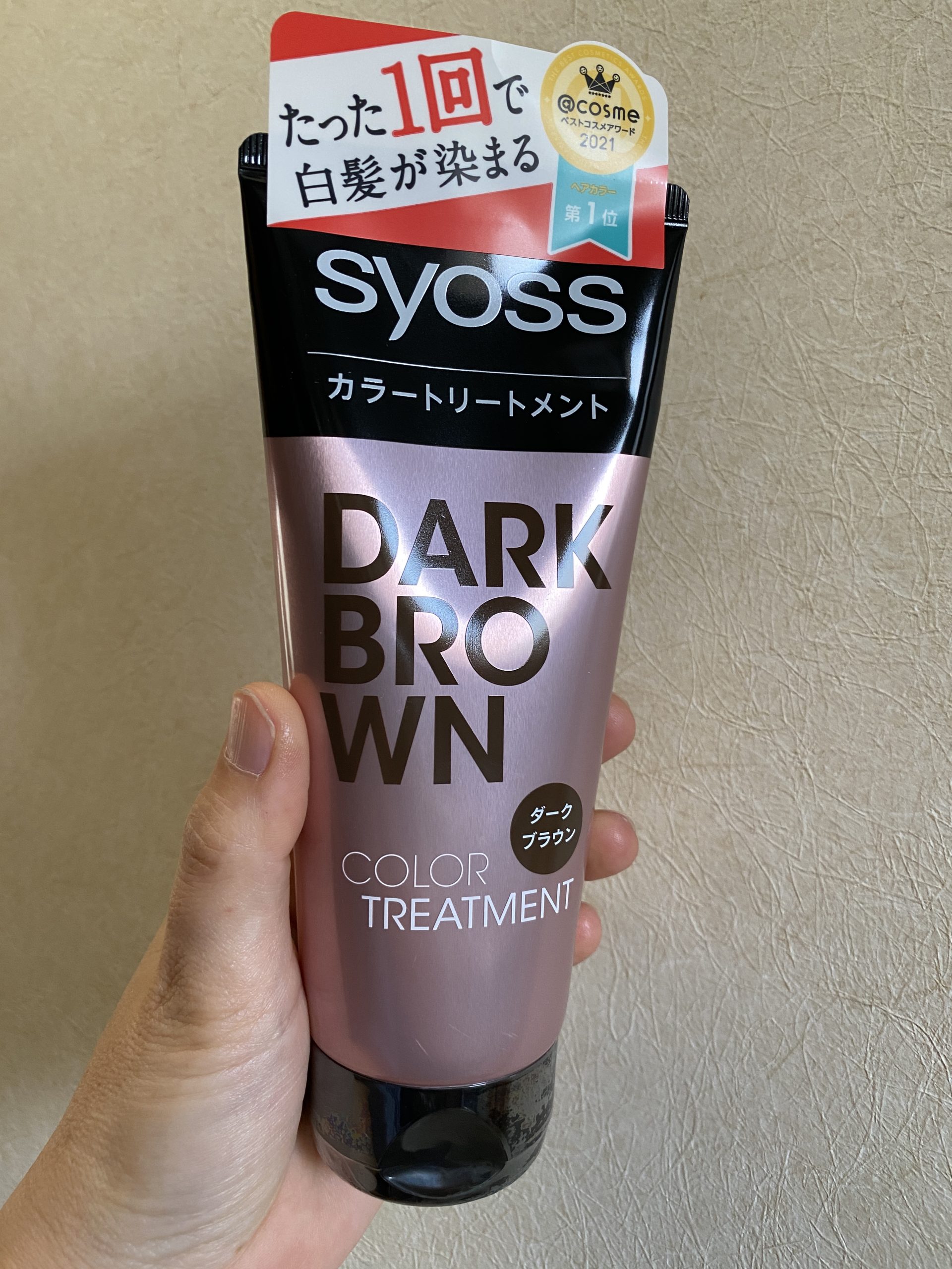 それから、こちらも神アイテムのカラートリートメントsyoss(サイオス)ダークブラウン